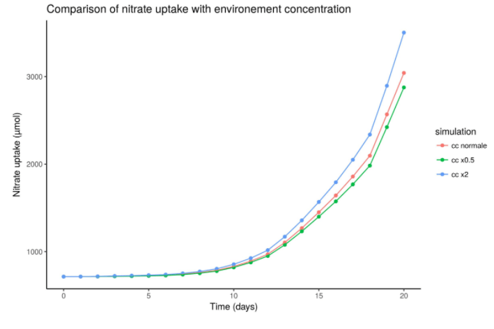 OpenSimRoot est un modèle racinaire structure-function qui est combiné avec un modèle de sol pour simuler l’absorption d’eau et de nutriments. Il permet la mise en œuvre de mini-modèles. Notre expérience avec ce modèle a d’abord été difficile, car nous avions besoin de comprendre comment exécuter une simulation, comment inclure les mini-modèles, qu’est ce que nous pouvions facilement changer dans les paramètres. Mais avec quelques heures de tests, nous avons pu réaliser des simulations de base, avec des apports d’azote contrastés.